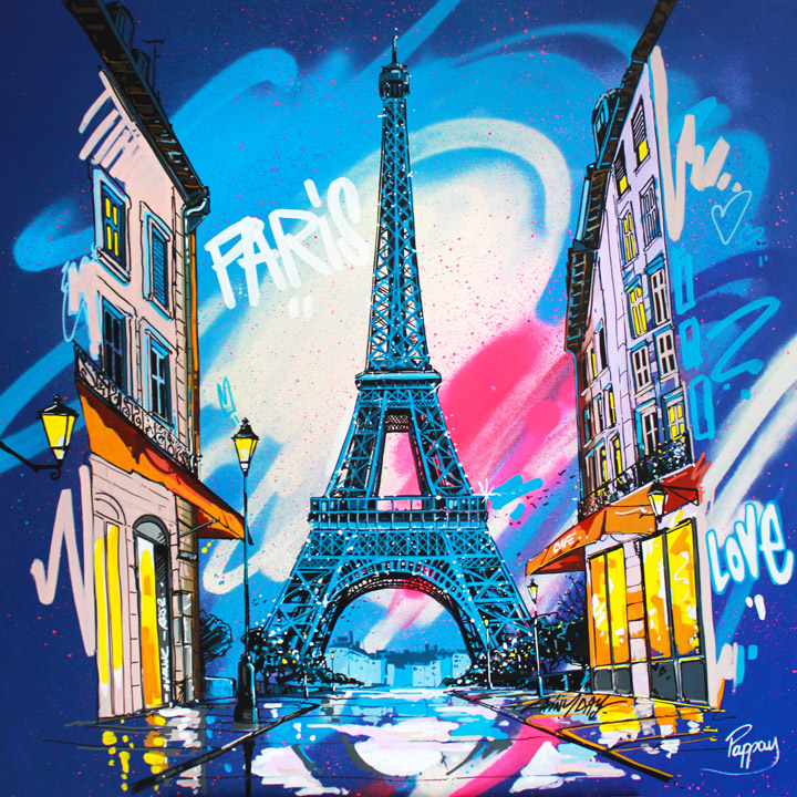 Street artiste, peintre dans l’âme, Pappay s’illustre dans un univers à la fois urbain, fantastique et populaire.